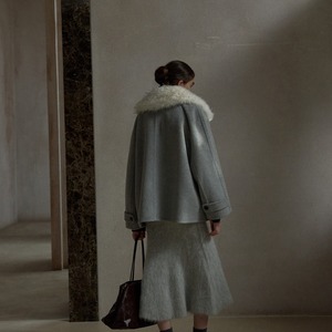 ふんわりとした襟元が、顔周りを華やかに彩るショート丈ジャケット。