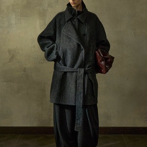 ベルトを結ばず、さらっと羽織るスタイルもおすすめです。