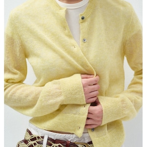 コンパクトな丈感で、スタイルアップ効果も期待できるニットカーディガン。
