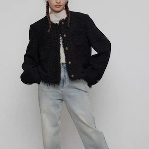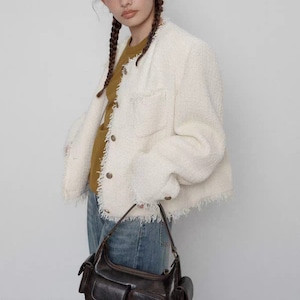 Fringe No-Collar Jacket 【2color】 T4306