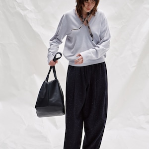 すっきりとしたVネックラインが、デコルテを美しく引き立てます。