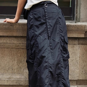 Belted midi-length cargo skirt 【2color】T4330