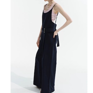 ゆったりとしたシルエットで、リラックス感漂うフルレングスサロペット。