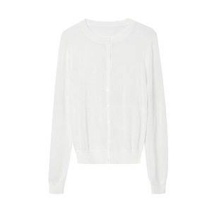 シアーな素材が、スタイリングに軽やかさをプラスするカーディガン。