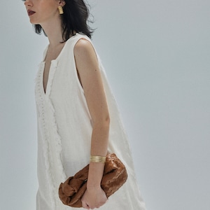 フリンジトリムがアクセントとなり、シンプルなシルエットに動きと軽やかさをプラスします。