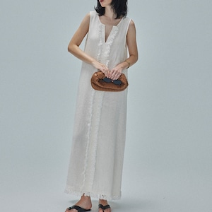 Fringe-Trimmed Maxi Sleeveless Dress T4335