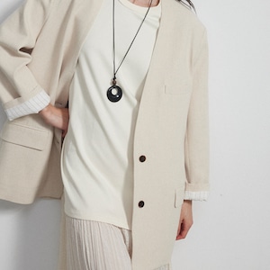 カットソーやシャツと合わせてカジュアルに、ワンピースと合わせてフォーマルにも着こなせる万能アイテムです。