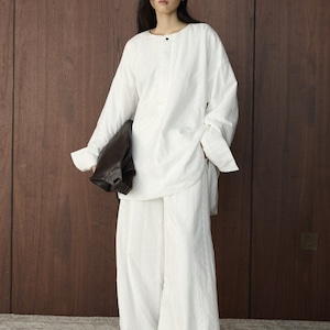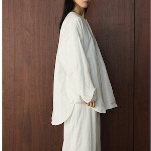 ゆったりとしたシルエットで、リラックス感漂うブラウス。