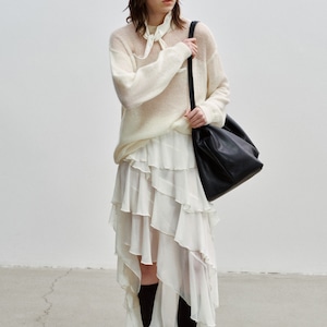透け感のある素材が、スタイリングに抜け感をプラスします。