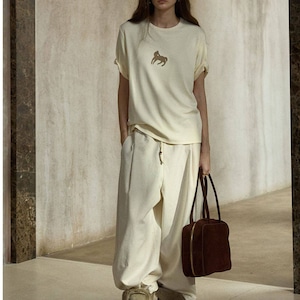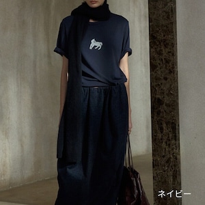 胸もとに施された小さなモチーフがポイントのTシャツ。