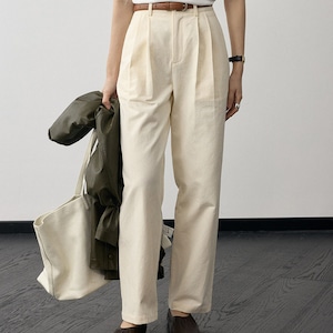 すっきりとしたシルエットで、様々なトップスと合わせやすいフルレングスパンツ。