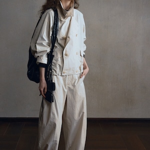 ボタンを留めてきちんと感を演出したり、前を開けてインナーを見せたりと、様々な着こなしが楽しめます。