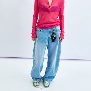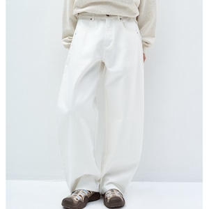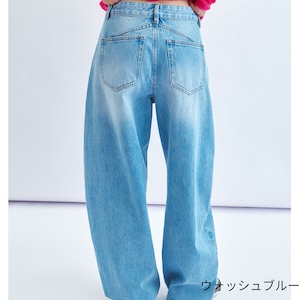 ルーズなシルエットで、こなれ感を演出するフルレングスデニム。