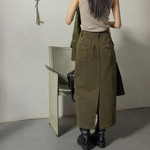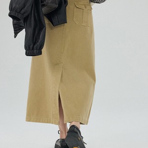 程よくハリのあるコットン素材で仕立てた、すっきりIラインのミディスカート。
