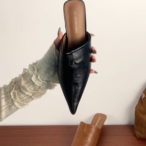 ミニマルデザインのミュール。無駄を削ぎ落としたシンプルなフォルムが、大人の抜け感を演出します。